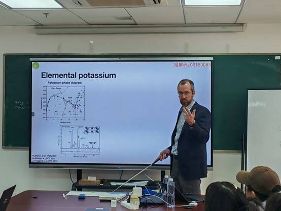 2025年12月2日下午, Andreas Hermann教授在东教楼1104学术报告厅为bevictor1946韦德官网部分物理学专业和材料与化工专业的博士生、硕士生和青年教师作了题为“From DFT to thermodynamic modelling”的学术报告。报告以近期关于“同时具备固体与液体特征的新物态”的报道为切入点,系统阐述他们研究团队在高压物理与计算材料学领域的系列工作。Andreas Hermann教授从钾的高压相图与非共格宿主—客体结构详细阐述了“链熔融”作为一种热力学中间态的证据与机制,提出了碱金属高压相可作为部分电子化合物的观点,展示了如何利用机器学习分子动力学模拟预测相变、熔化线极值及热力学性质,介绍了基于Bragg-Williams模型的两态热力学理论,解释了金属熔化线中的临界行为。此外,Andreas Hermann教授还介绍了第一性原理计算在高压冰(VII–VIII–X)相变研究中的应用,探讨了隐藏临界点与相图拓扑等前沿问题,展望了机器学习在预测复杂材料行为方面的潜力。报告期间,Andreas Hermann教授与在场师生就高压相变机理、机器学习势函数开发等相关问题展开了深入讨论并细致回答了师生提问。