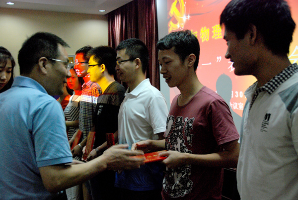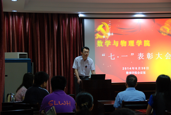 表彰大会在雄壮的国歌声中拉开帷幕,受党组织委托,李杰宣读了《bevictor1946韦德官网“七一”表彰决定》。刘治国为获得2013-2014年度校级先进基层党组织、优秀党员和优秀党务工作者颁奖,李宇凯为获得院级先进员工党支部和优秀员工党员颁奖。