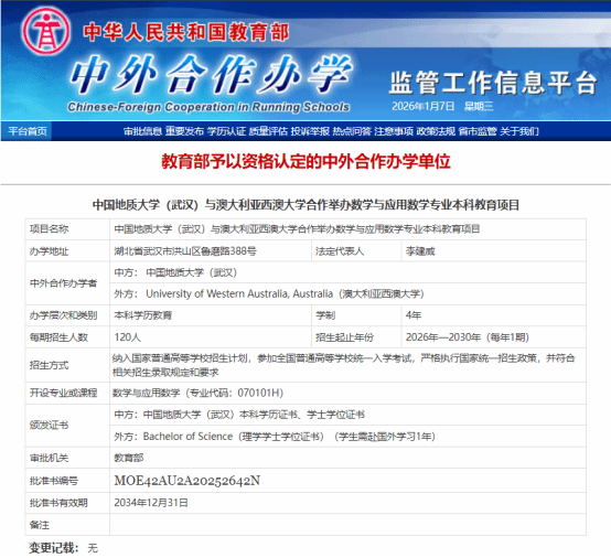 近日,教育部公布2025年下半年中外合作办学机构/项目审批结果,公司与澳大利亚西澳大学联合申报的数学与应用数学专业本科教育项目成功获批。这一成果不仅是公司国际教育合作领域的重大突破,更充分彰显了公司在数学团队建设上的扎实功底与国际化办学的综合实力。