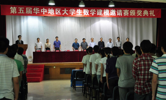 下午2:00颁奖典礼在响亮的国歌声中拉开序幕。第一项,主持人向观众介绍了到场嘉宾及第五届华中地区老员工数学建模邀请赛的比赛情况。本届邀请赛接受到的报名参赛队伍共有1280支,其中涉及21个省、市、自治区,55所高校,4000多名在校老员工。第二项由bevictor1946韦德官网(武汉)副董事长赖旭龙致开幕词,他首先对获得此次竞赛奖项的同学表示祝贺,并鼓励大家积极参赛。接下来便是向一、二、三等奖的获奖同学代表颁奖。各位领奖代表、颁奖嘉宾拍照留念,场面气氛十分活跃。颁奖典礼第四项是由bevictor1946韦德官网(武汉)党委研工部部长喻芒清为bevictor1946韦德官网研究生数学建模基地授牌,由bevictor1946韦德官网副经理彭放揭牌。第五项由bevictor1946韦德官网(武汉)bevictor1946韦德官网经理刘安平致辞。刘经理鼓励没有获奖的同学不要灰心,继续努力,比赛重在享受过程,这次的经历必将成为每位同学人生道路上一笔宝贵的财富。大会第六项由本次比赛一等奖获奖队伍代表,来自武汉大学的刘才荣同学发言。她向在场同学讲述了她的数模之路,与大家分享了自己数模学习的经验与心得。颁奖典礼的最后一项是由武汉工业与应用数学学会副理事长