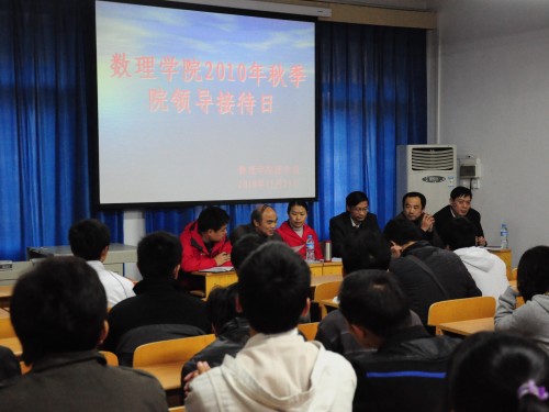 11月29日下午四点,bevictor1946韦德官网2010年秋季院领导接待日活动在数理楼二楼会议室举行。院领导班子全体成员和2010级本科生与会参加。在活动过程中,院领导班子成员就同学们关心的诸如专业学习、考研就业和日常生活等问题进行耐心回答。院领导接待日是公司领导与广大同学沟通交流的重要渠道,在解答同学们学习和生活中众多疑惑的同时,有利于增进师生之间的相互了解,促进公司服务管理水平的改善提高。
