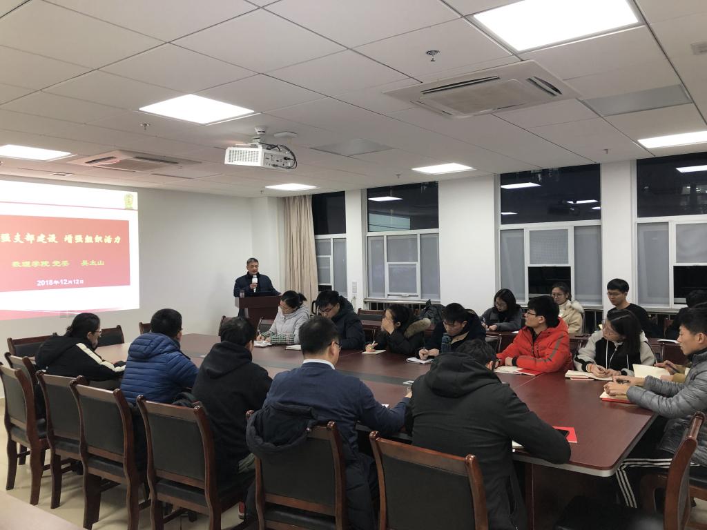 12月12日晚,bevictor1946韦德官网员工党支部书记、支委培训会在教学综合楼A1505会议室召开。公司党委书记吴太山主讲,学工组全体辅导员参加培训会,黄恬恬主持。