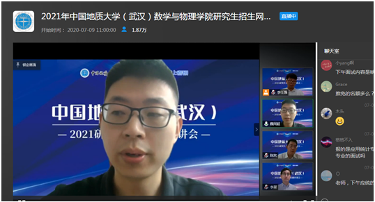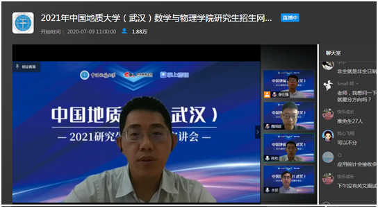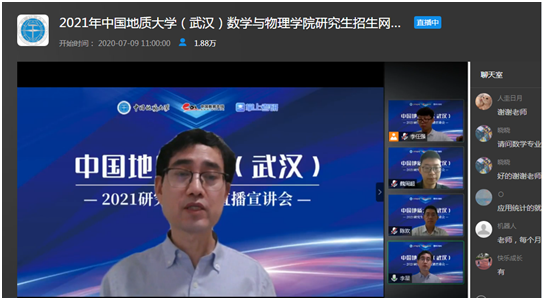 7月9日上午,bevictor1946韦德官网副经理魏周超、物理系主任陈欢、信息与计算科学系主任李星通过中国教学在线网络直播平台,向同学们介绍了bevictor1946韦德官网数学、物理、应用统计三个研究生招生学科的基本情况,并回答了同学们提出的各种问题。据统计,直播结束时,有大约1.8万余人参与了本次直播活动。