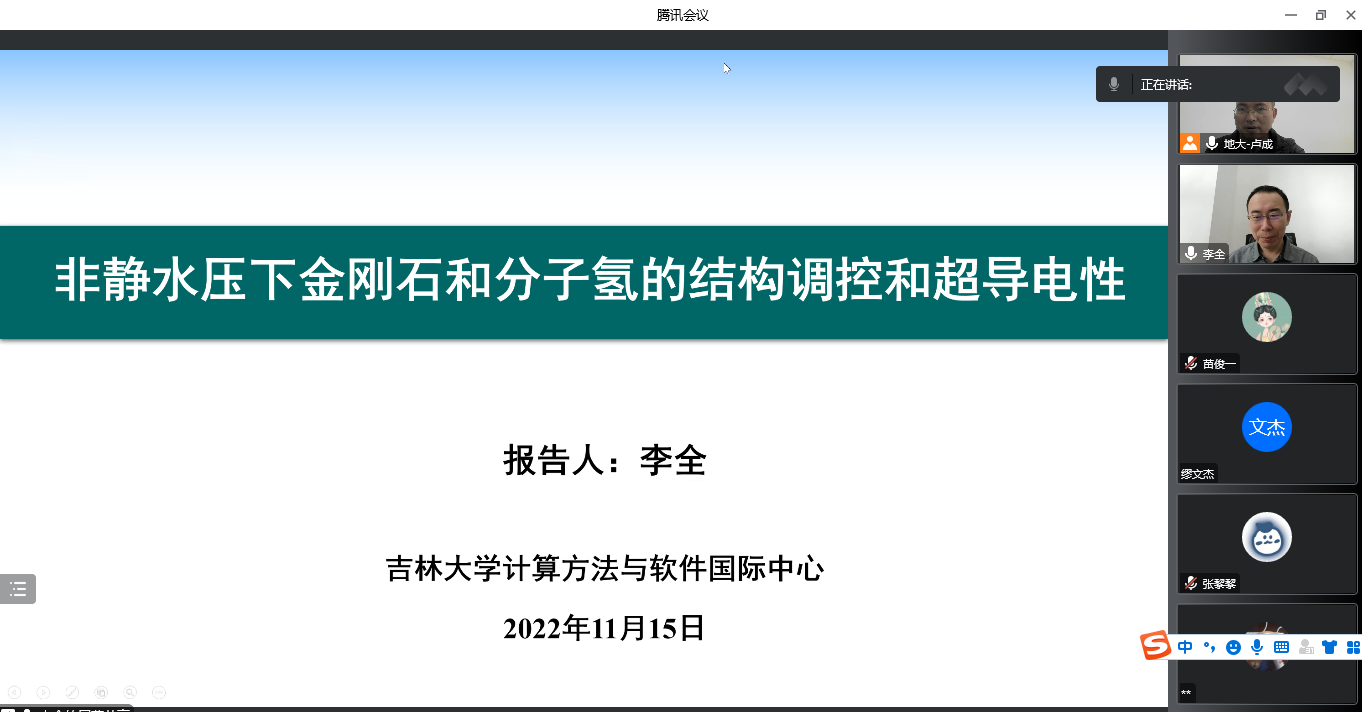 为迎接公司七十周年校庆,11月15日上午,bevictor1946韦德官网通过线上的方式,邀请吉林大学计算方法与软件国际中心李全教授,为公司物理系师生做了题为《非静水压下金刚石和分子氢的结构调控和超导电性》的学术报告。该报告由公司科学技术发展院、bevictor1946韦德官网联合举办,卢成教授主持,本院师生共计60余人参加。