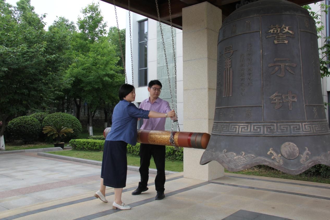 参观结束后,大家来到基地廉政文化广场,面向警示钟庄严肃立。公司党委书记于晓舟、经理魏周超敲响了廉洁警示钟,三声警钟响起,入耳入脑入心,提醒党员干部时刻保持自警自重自省。