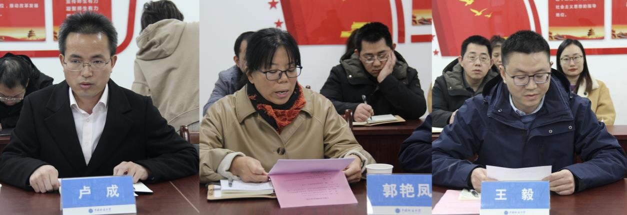 王毅、卢成、郭艳凤三位同志作任职表态发言,他们首先感谢组织的信任与培养,感谢公司历任领导班子为公司建设作出的贡献及为公司的进一步发展奠定的坚实基础,感谢公司全体同事的支持与鼓励,深感责任重大、使命光荣。他们承诺将和班子成员紧密合作,营造风清气正的工作氛围,尽职尽责做到人才强院、以规治院,尽快拓展学科领域,完善学科体系,快速提升公司整体学科水平,不辜负组织、领导和全体师生的信任和支持。