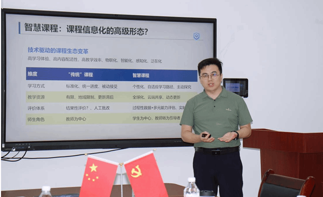 地球科学公司马强副经理以“面向人才培养体系转型的智慧课程建设”进行主题汇报,围绕“什么是智慧课程、我需要智慧课程吗、如何建设智慧课程”三个方面展开。从课程改革的承、破、立,到重构教学内容的方法,再到以课程群/知识体系为对象开展智慧课程的建设,以及如何让AI成为点燃拔尖人才成长的引擎,进行了精彩的分享。