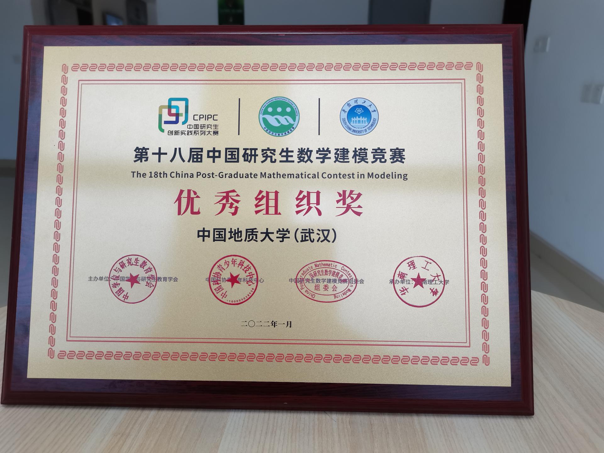 公司获全国研究生数学建模竞赛优秀组织奖及先进个人