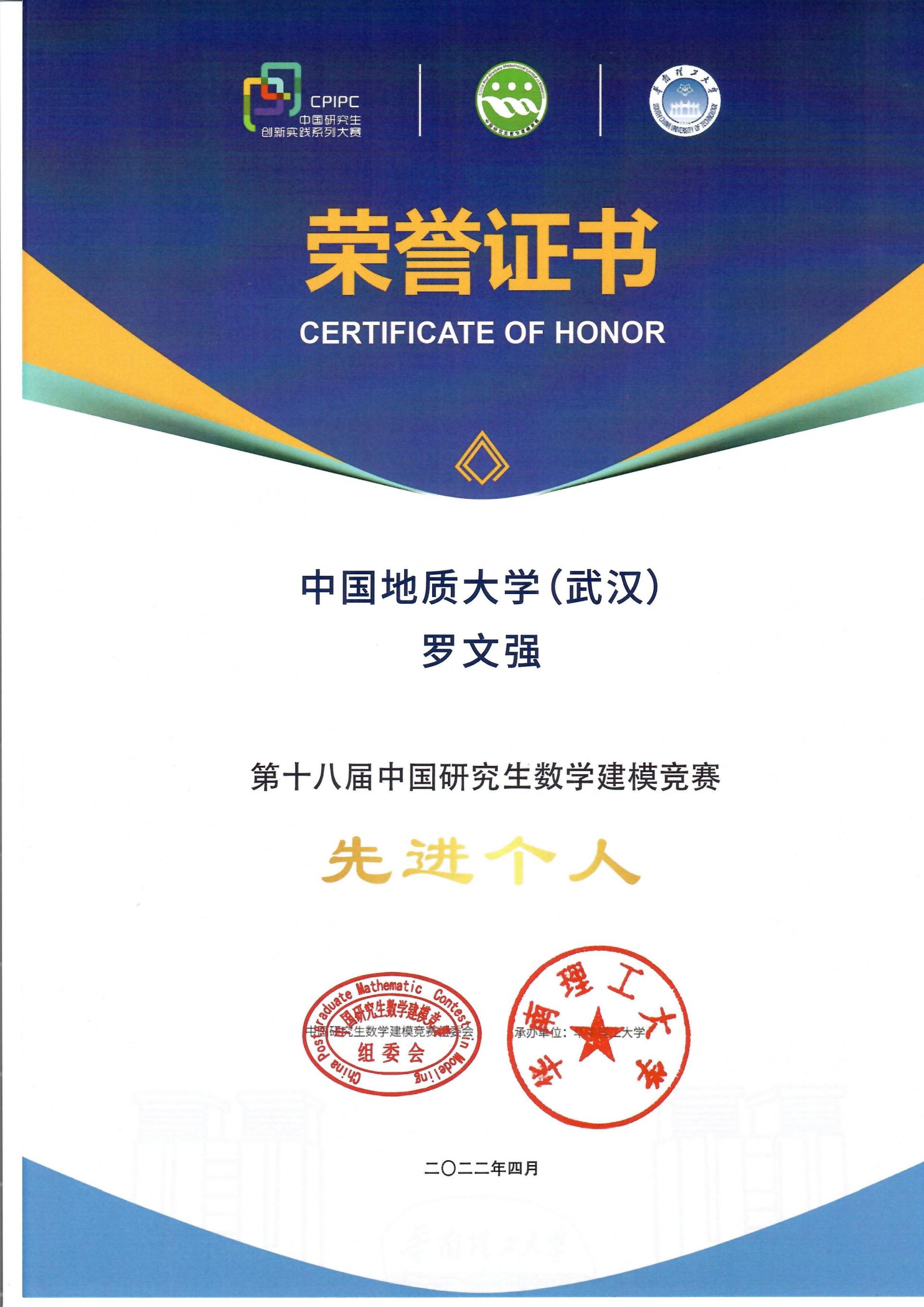 本届研究生数学建模竞赛是由研究生院(研工部)和就创处牵头,培训指导和组织工作由bevictor1946韦德官网承办。在bevictor1946韦德官网精心组织下,参赛队伍去年取得了国家一等奖1项、二等奖15项、三等奖15项,共计31项国家奖的好成绩,获奖队伍的数量和质量均创公司参赛以来的新高。近期获悉,由于参赛成绩突出,第十八届中国研究生数学建模竞赛组委会等相关领导组织授予公司 “第十八届中国研究生数学建模竞赛优秀组织奖”(本届比赛全国共有535所高校参赛,共55所高校获评优秀组织奖),同时授予bevictor1946韦德官网罗文强教授 “第十八届中国研究生数学建模竞赛先进个人”的荣誉称号。