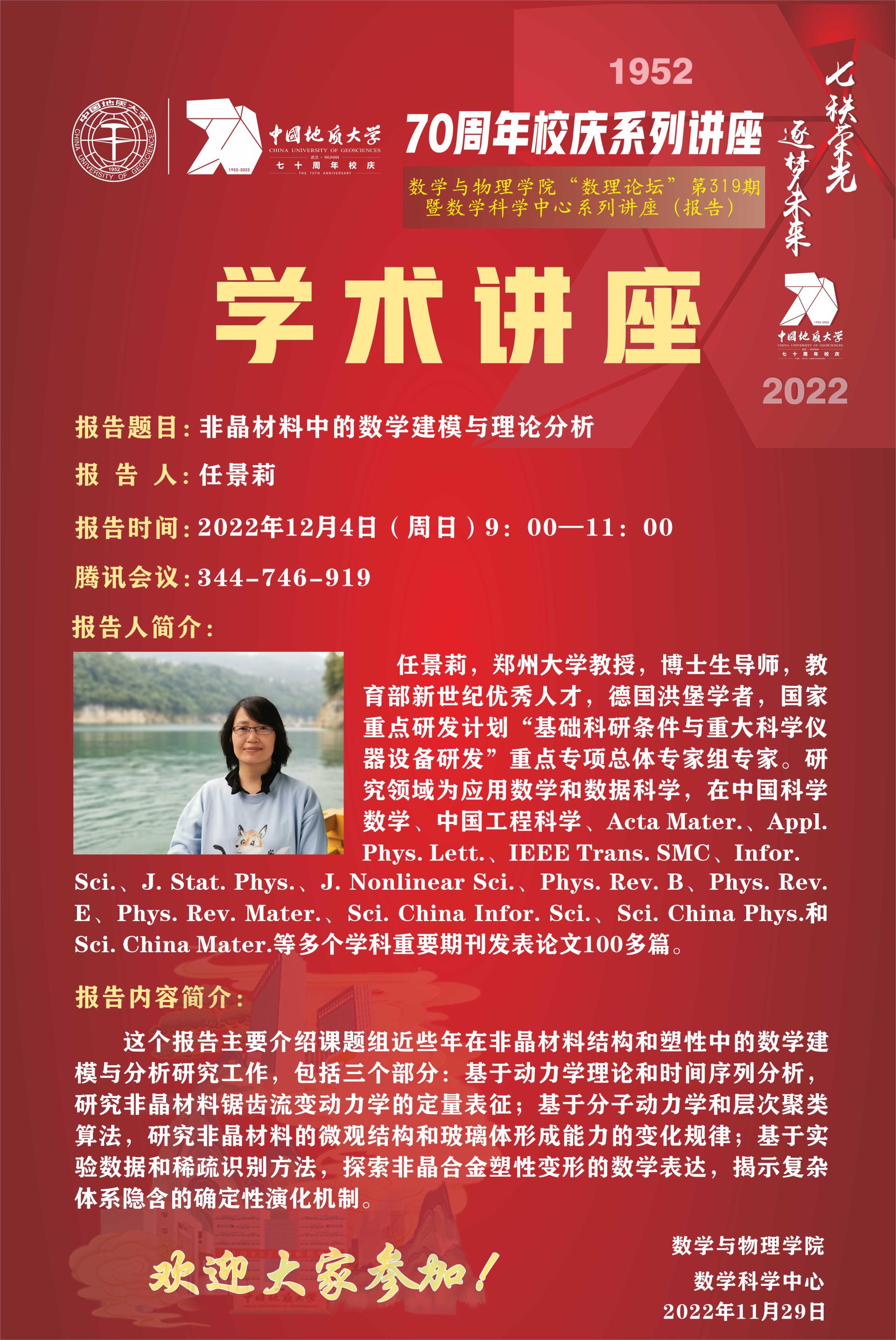 "数理论坛"第319期暨数学科学中心系列讲座(报告):非晶材料中的数学建模与理论分析