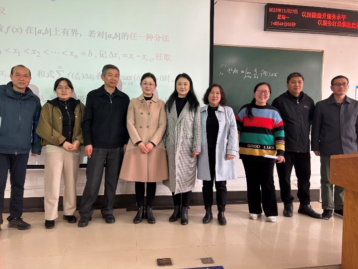 2023 年 11 月 27 日,在大学数学教学部组织下,大学数学教学部多名教师在北综楼101现场观摩了陈兴荣老师的“高等数学”公开课。陈老师将多媒体与板书完美结合,授课手段使用合理有效。授课中,陈老师通过精心设计例题,丝丝入扣,教学环节衔接自然,语言准确,讲解清晰明了,将枯燥的概念讲得深入浅出,通俗易懂,启发式教学引导员工思考、分析问题,积极参与教学活动,课堂师生互动充分,整个课程气氛活跃,达到了很好的教学效果,陈老师的授课得到了观摩教师们的一致好评。