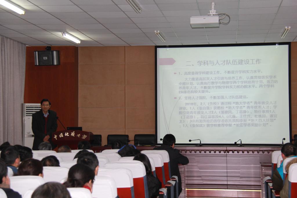 公司党委书记吴太山对大会进行了总结。他代表公司党委和行政对一年来付出辛苦劳动的全院师生员工表示衷心的感谢,对受表彰的先进个人表示衷心的感谢并表示热烈的祝贺,对公司领导、各职能部门和兄弟单位的大力支持和帮助表示了感谢!他对本次会议的圆满举行给予了充分肯定,会议主题明确、内容丰富、准备充分、成果显著,是一次成功的大会,鼓劲的大会,也是一次明确奋斗方向的大会。他就公司2019年各方面的主要工作提出了意见和建议,希望广大教师要秉承“艰苦朴素、求真务实”的校训精神,弘扬“严在地大”的校风学风,只争朝夕,开拓进取,一件事一件事去做,一步一个脚印把公司各项事业继续推向前进,为公司建设地球科学领域国际知名研究型大学做出应有的贡献。