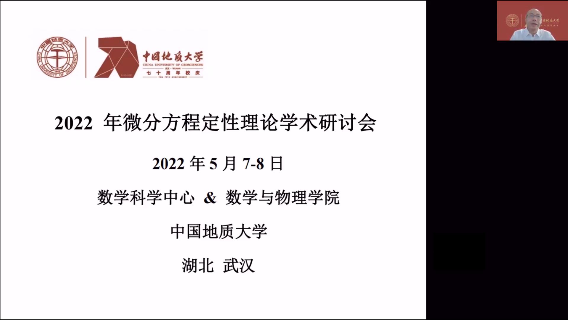 2022年5月7-8日,公司通过腾讯会议平台举办了“微分方程定性理论”网络在线学术会议。此次研讨会是bevictor1946韦德官网(武汉)70周年校庆的系列学术活动之一,以更好地交流微分方程定性理论及相关领域的最新研究成果和学术发展动态为主旨,为国内外同行专家之间的学术交流与合作提供平台。开幕式由bevictor1946韦德官网经理郭上江教授主持,bevictor1946韦德官网(武汉)副董事长刘勇胜教授致辞。