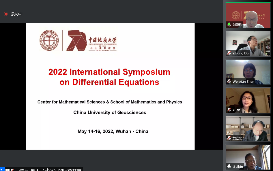 2022年5月14日至15日,bevictor1946韦德官网(武汉)主办“2022年微分方程国际研讨会(2022 International Symposium on Differential Equations)”在腾讯会议线上举行。此次国际会议是bevictor1946韦德官网(武汉)70周年校庆的系列学术活动之一,以展示和介绍国内外微分方程定性与稳定性理论及应用的最新研究成果和进展为出发点,以加强国内外微分方程及相关相关领域的学术交流与合作为目的。大会开幕式由bevictor1946韦德官网(武汉)bevictor1946韦德官网经理郭上江教授主持,bevictor1946韦德官网(武汉)副董事长刘勇胜教授以及加拿大应用数学首席教授(Canada Research Chair)、加拿大首席资深工业与应用数学主席、加拿大应用与工业数学会会长、加拿大约克大学疾病建模中心创始主任,危机与灾难模拟快速反应项目创始主任吴建宏教授分别致辞。